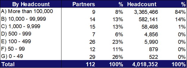The partner network includes consulting firms of various sizes. Around a third of these partners are boutique data consulting companies with fewer than 100 employees, while nearly two-thirds have fewer than 500 employees.