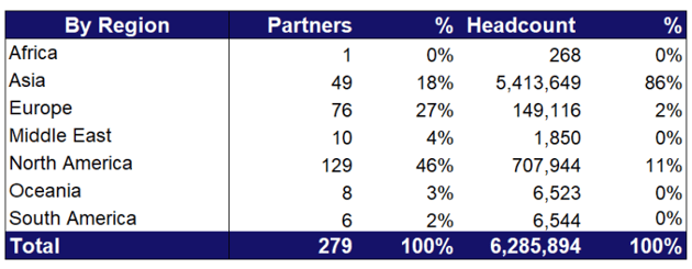 The ecosystem is concentrated in North America, which accounts for nearly half of partners, and Europe, which represents over a quarter.