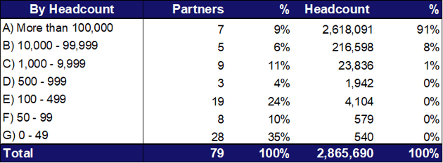 Firms of various sizes participate in the UKG partner program. The following breakdown illustrates the distribution by company size.