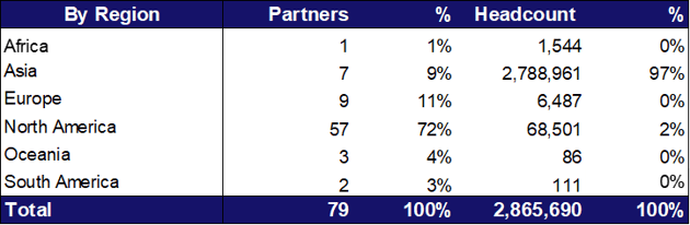 The regional breakdown shows that North America represents the largest share of consulting partners.